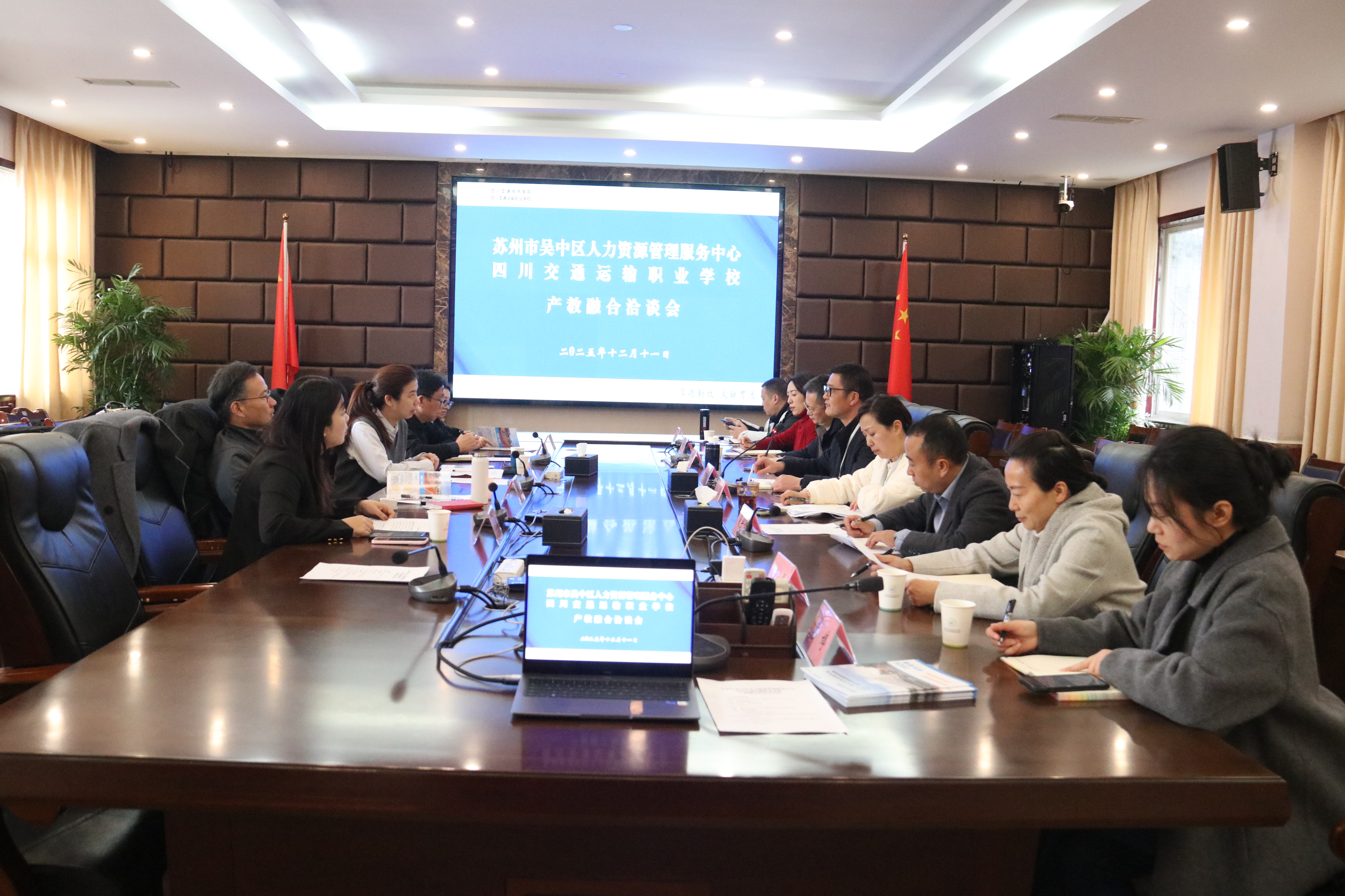 12月11日上午,苏州市吴中区人力资源服务中心到访我校,就产教融合合作开展交流洽谈。我校党委书记曾祥亮出席会议,副校长兼工会主席周萍,以及机电工程系、组织人事科、招生办公室等部门相关人员共同参会。双方围绕校企合作、人才培养开展深入交流。